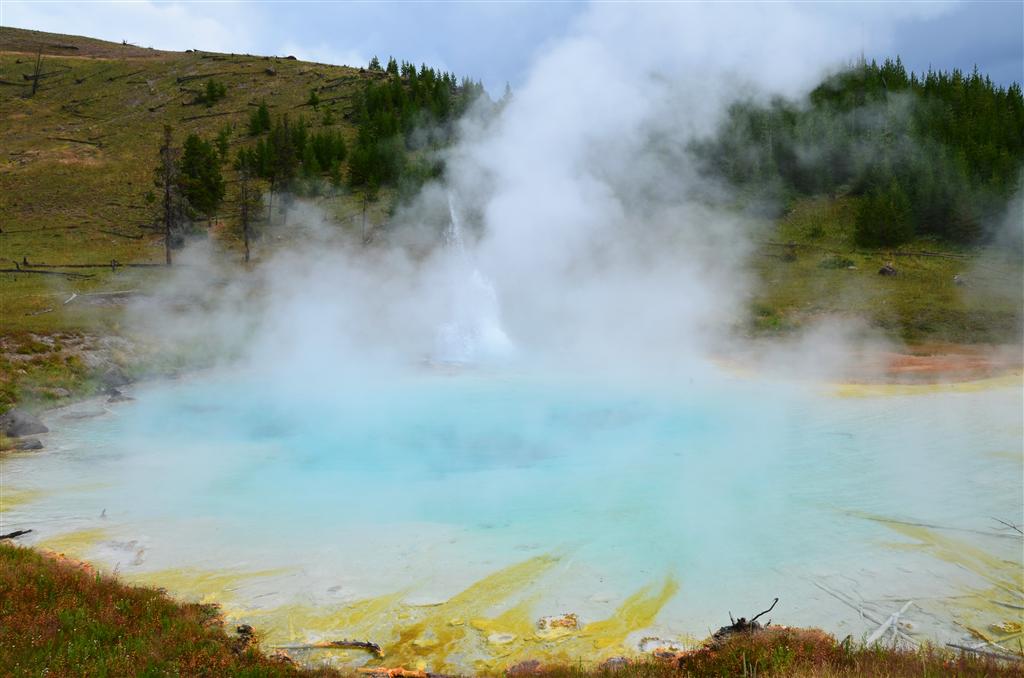 Imperial Geyser was spouting only infrequently, but fortunately we were there when it did! The very noticeable spluttering and hissing increased dramatically and then an easily 20-30 foot plume of heated water and vapor shot skyward. It was definitely a special moment to be there, surrounded by only a few others who had made the trek to see this miracle of nature.