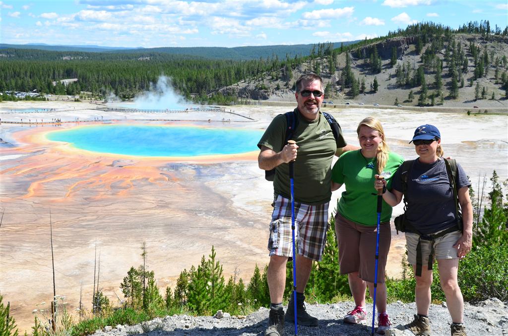 The view of the Midway Geyser Basin itself would have been impressive enough, but it’s the stunning view of Grand Prismatic Spring that really takes our breath away! I literally can’t take my eyes off of it.
