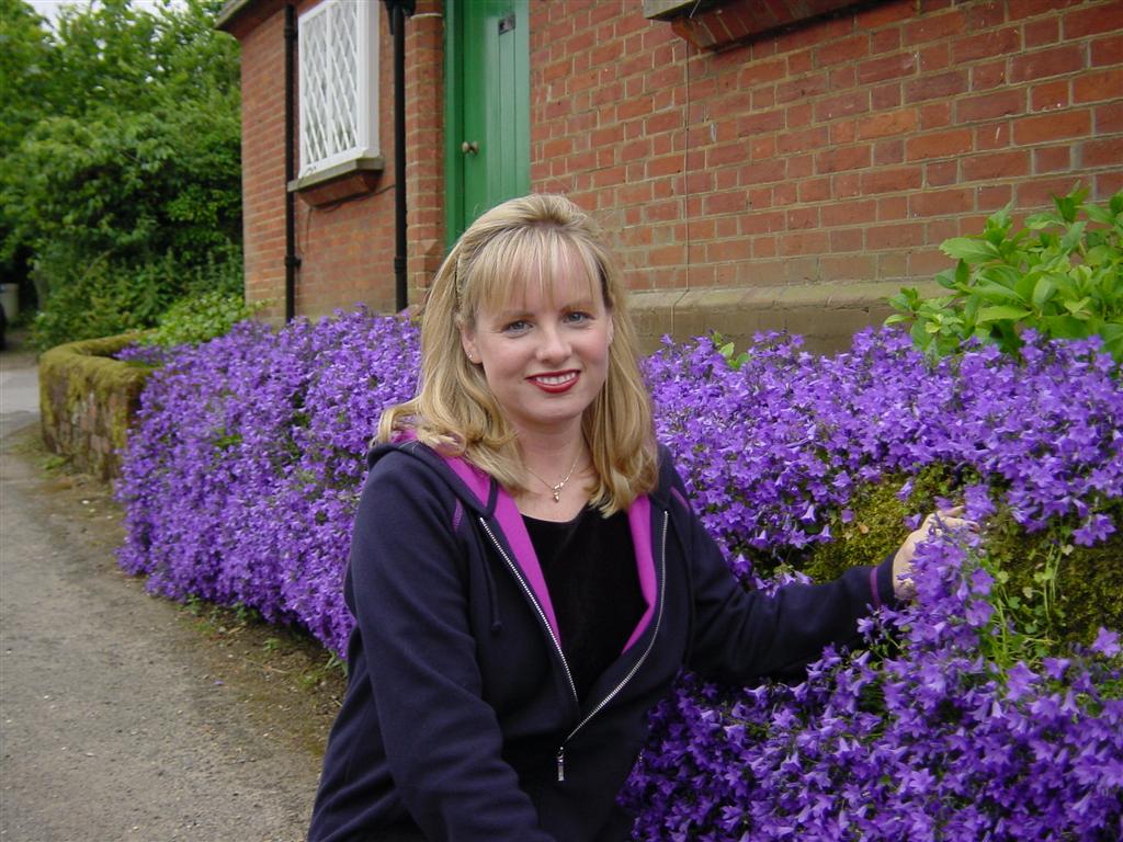 Kathy with flowers in ShereNext on the tour was the lovely village of Shere. The stream through the middle of town was stunning and home to quite a few ducks!