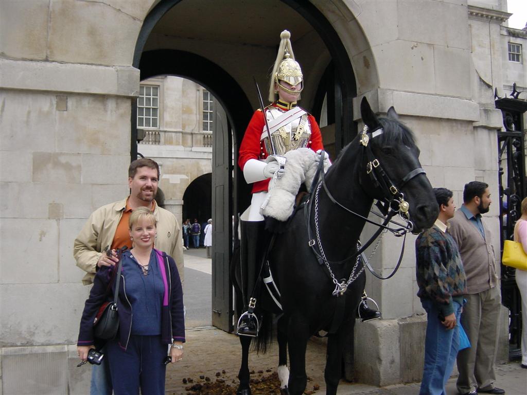 Westminster AbbeyWe head off through St. James’ Park this time, passing #10 Downing Street, home of the British Prime Minister. Next, we’re off past the Royal Horse Guards. A couple of pictures (for Melanie!) and we continue on our way.