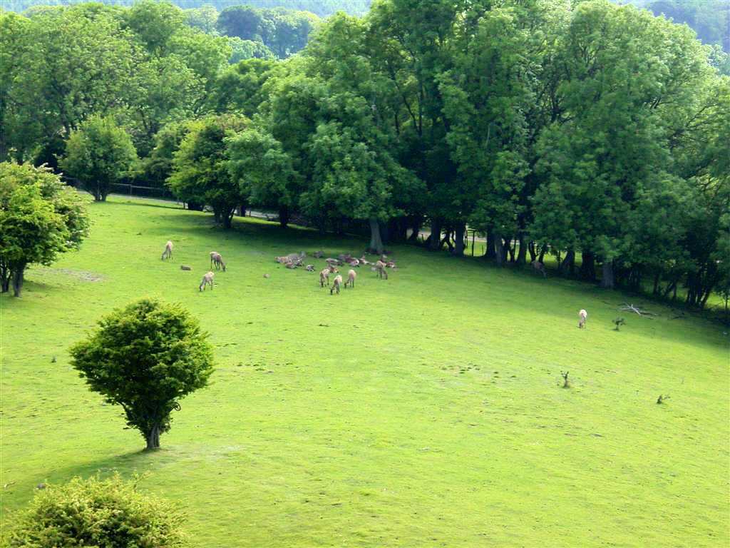 Julian makes the turn up to Broadway Tower, the highest spot in the Cotswolds, with a “folly” medieval tower (built in the late 1700s) atop it. We climb it, amid red deer and Highland Cattle (a “shaggy cousin” of my beloved Texas Longhorn!), and are greeted with spectacular views!!!