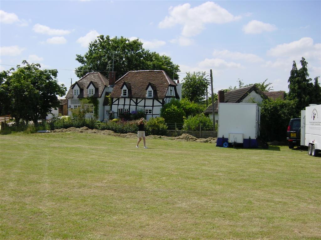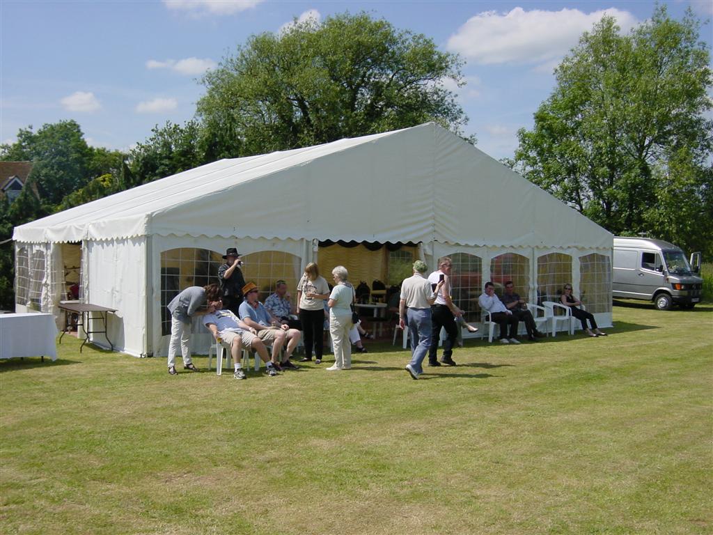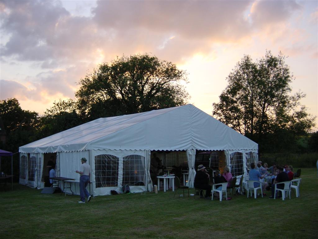 A marquis (aka “tent”) has been set up in the field across from Mill Cottage. Caterers have a wonderful array of different grilled meats and salmon, along with salads and other vegetables. Lots and lots of drinks and the nicest “porta-Loos” we’ve ever seen (!!) set everything up for a great afternoon!