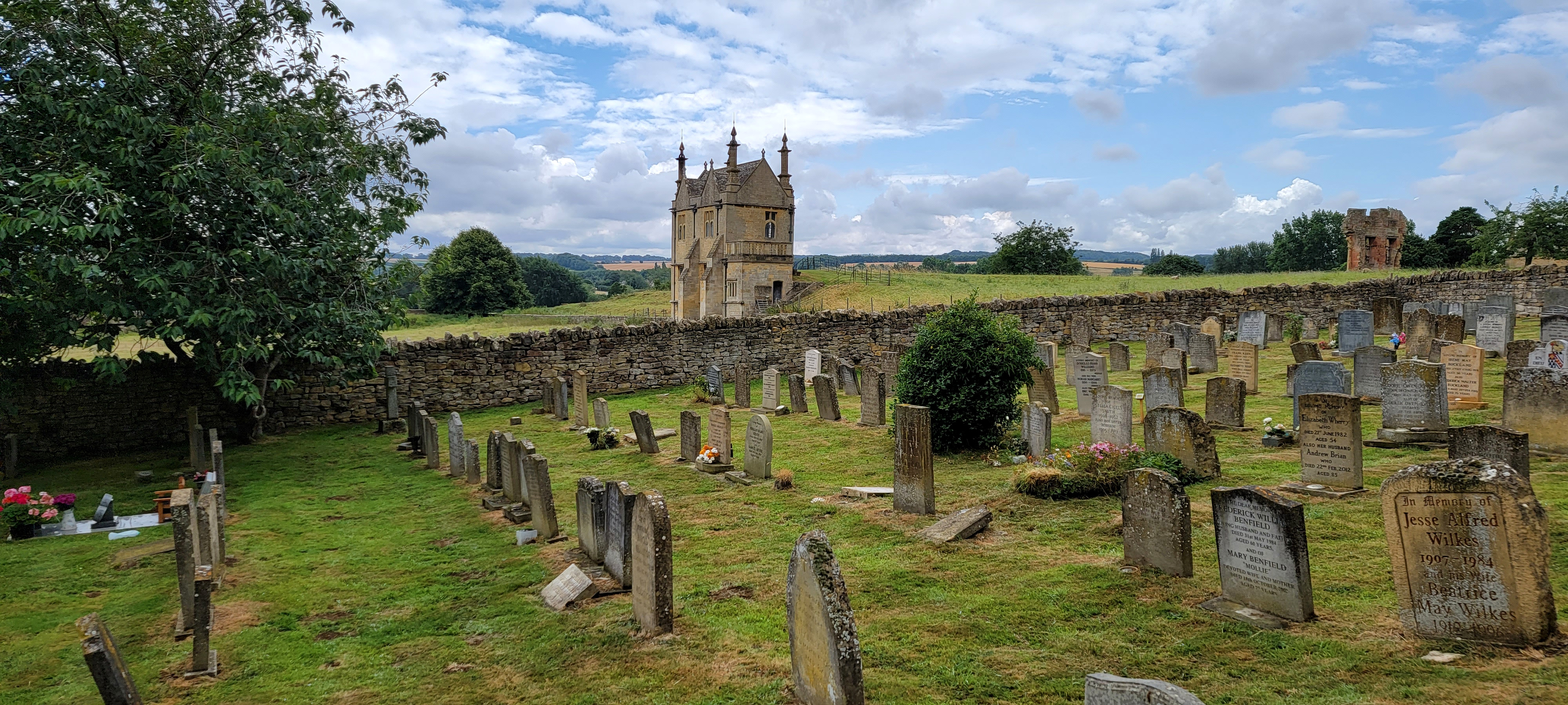 So – lots of walking around and taking of photos later — I get numerous shots of not only the famous East Banqueting House (which you can’t tour, but is actually now a Landmark Trust Property that can be rented as a holiday home), but the ruins of old Campden House that had been destroyed on purpose during the English Civil War in 1645.  The closest I could get, sadly, was viewing from the cemetery – but it provided some interesting views nonetheless.