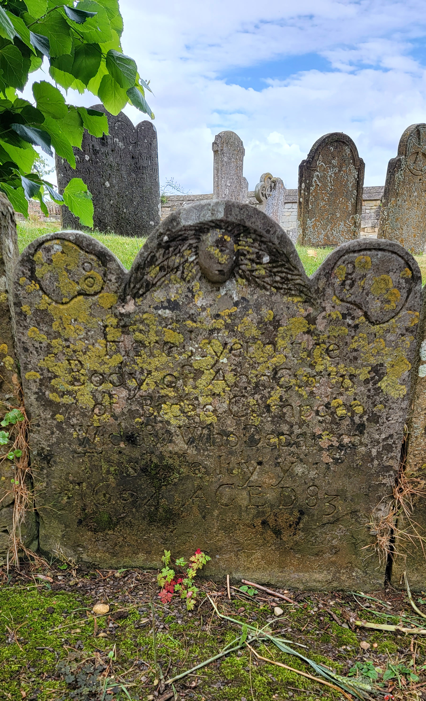 On the way out, I notice that there were numerous old gravestones that had been converted into an almost “edge wall” along the main walkway.  One stone, in particular, caught my eye and after looking at it on my photo later, I could see why – it was from 1694!