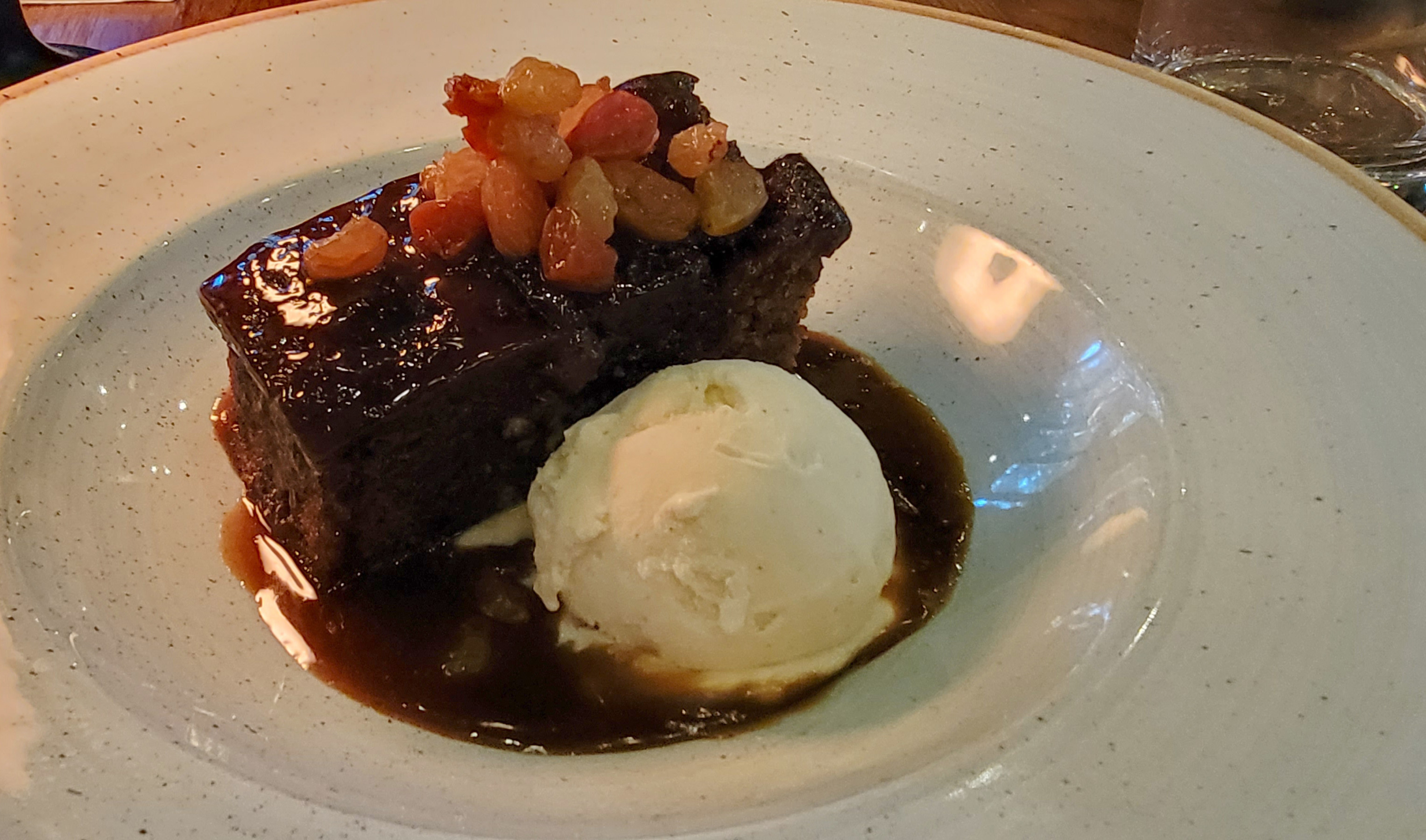 A champagne toast before dinner only enhanced the actual meal – but what a meal it was, with my Herefordshire beef being just an absolute joy to the palate.  And yes, to no one’s surprise at all, I did have the rum & raisin sticky toffee pudding for dessert.  Ha!