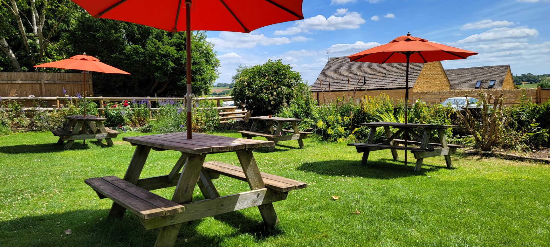 Between the walk from Charingworth and poking around St. Eadburgha’s, I was more than ready for lunch! The Ebrington Arms is the village pub that has won awards for years as being one of the nicest pubs in the Cotswolds. Our visit in 2015 was great – being able to sit near the fireplace inside the pub was a nice experience. This time around, with the warmer temperatures and sunny days, I was really looking forward to sitting outside in the beer garden.