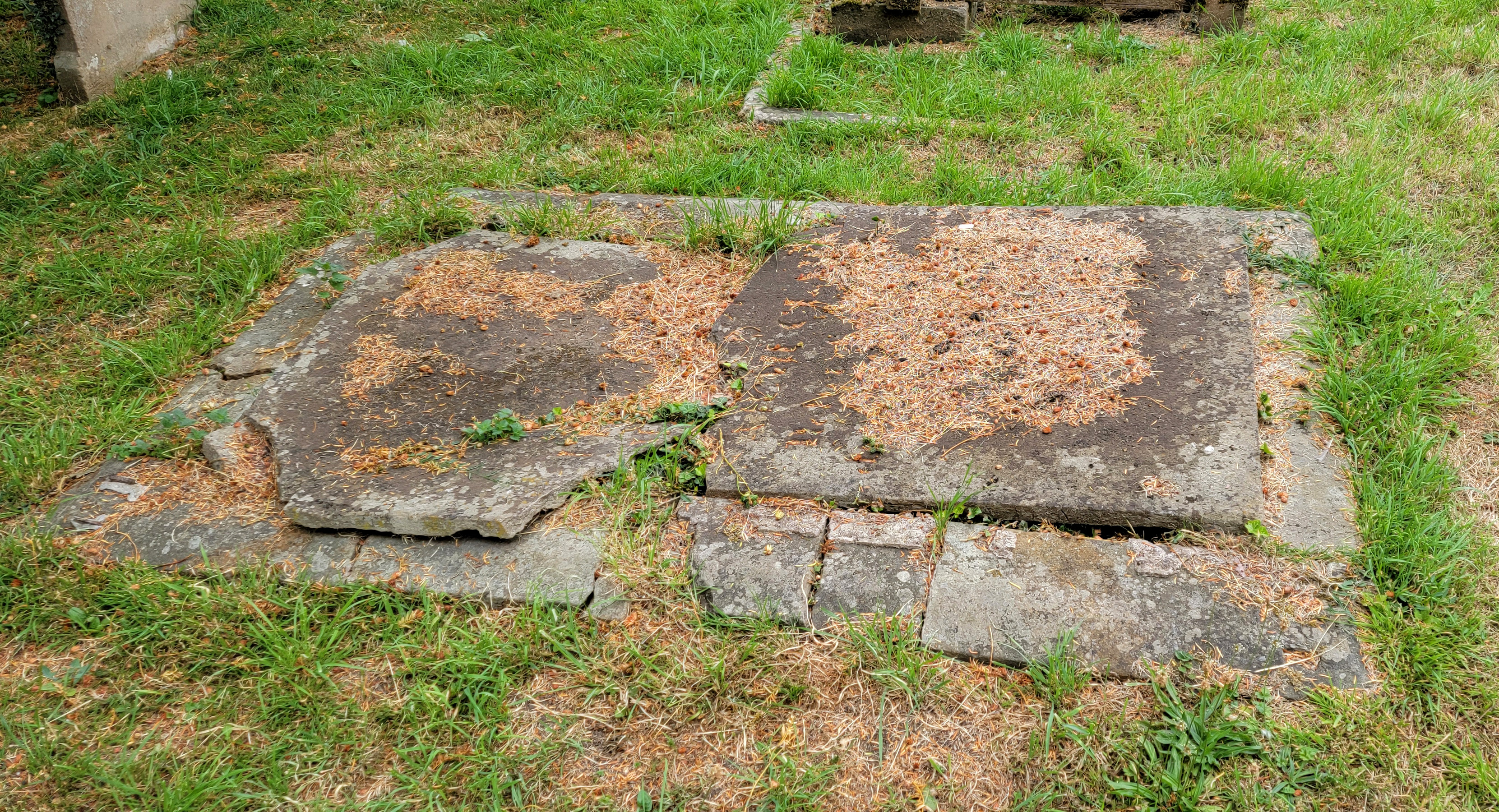 Behind the church was the requisite cemetery, with a mixture of newer intact headstones, older leaning headstones, and more than a few crumbling tomb covers… it always fascinates me to see the different states of care given to these, knowing that the stones are not being ignored, but rather being treated with respect and always looking for non-destructive ways of repair – if repair is needed. Sometimes, the state of the stones is what makes it respectful — it shows the true passage of time, and if they were somehow “made whole” again, they would look too modern and clean and lose some of the historical impact you get when you see them in person. It’s an interesting dynamic, to be sure.