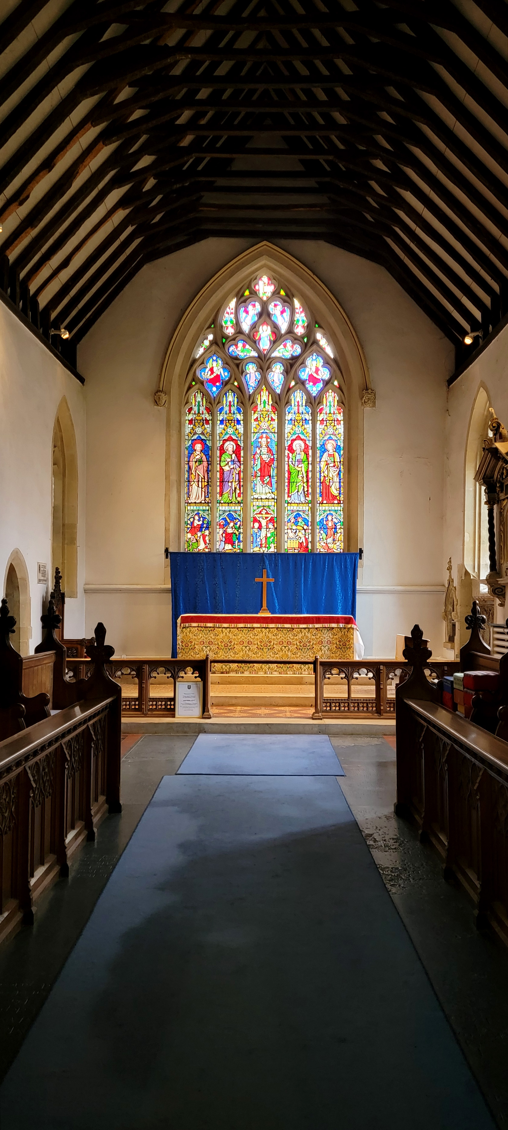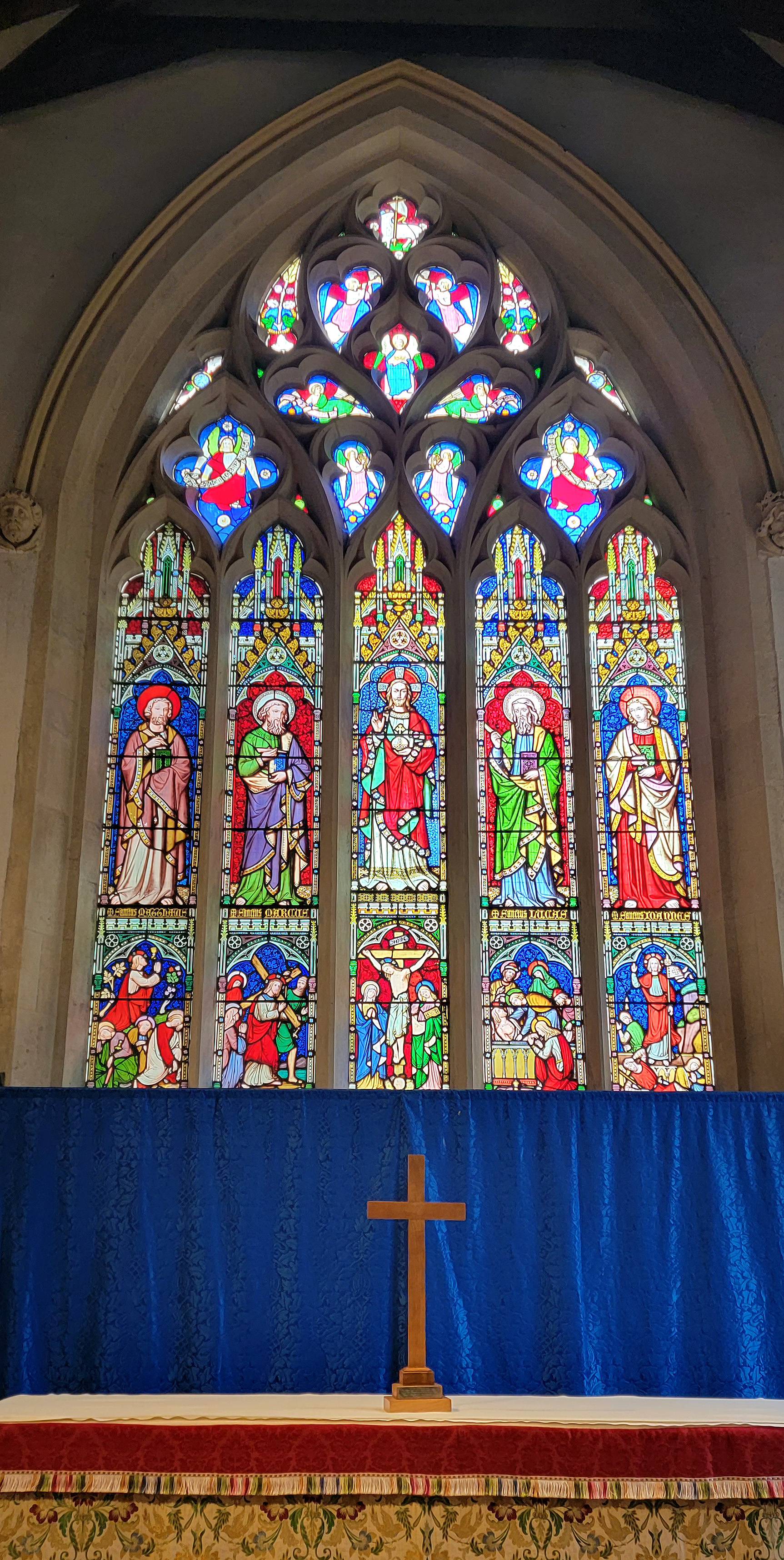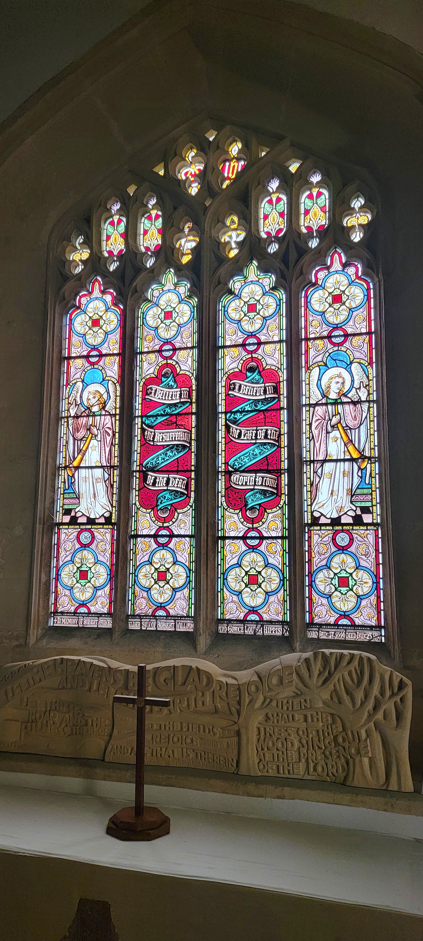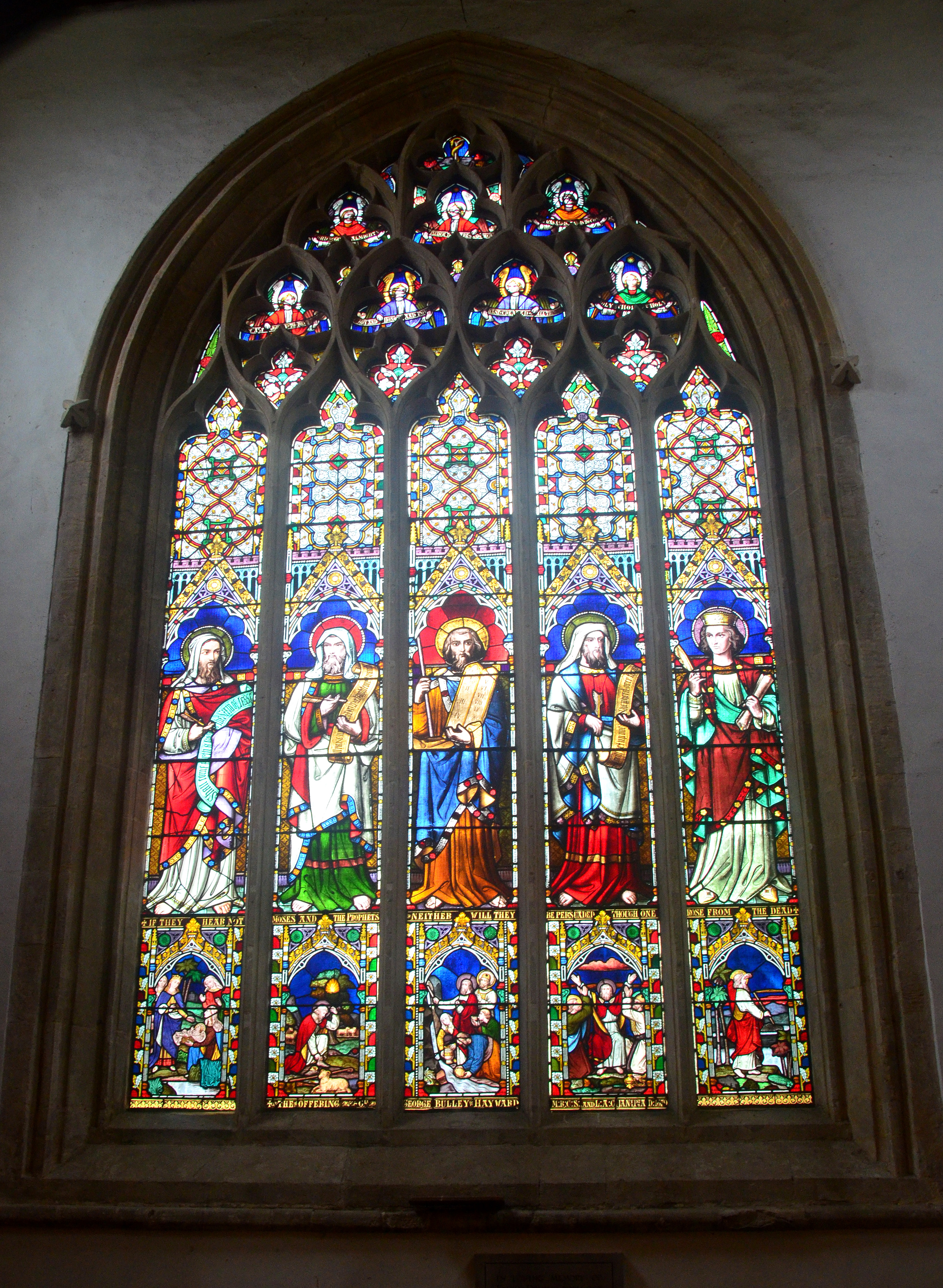 Inside of St. Edwards (hey look – another medieval baptismal font!) is another impressive Cotswolds church visit. There are three massively impressive stained glass windows here – on the rear wall of the sanctuary, above the altar itself, and on one of the side walls.