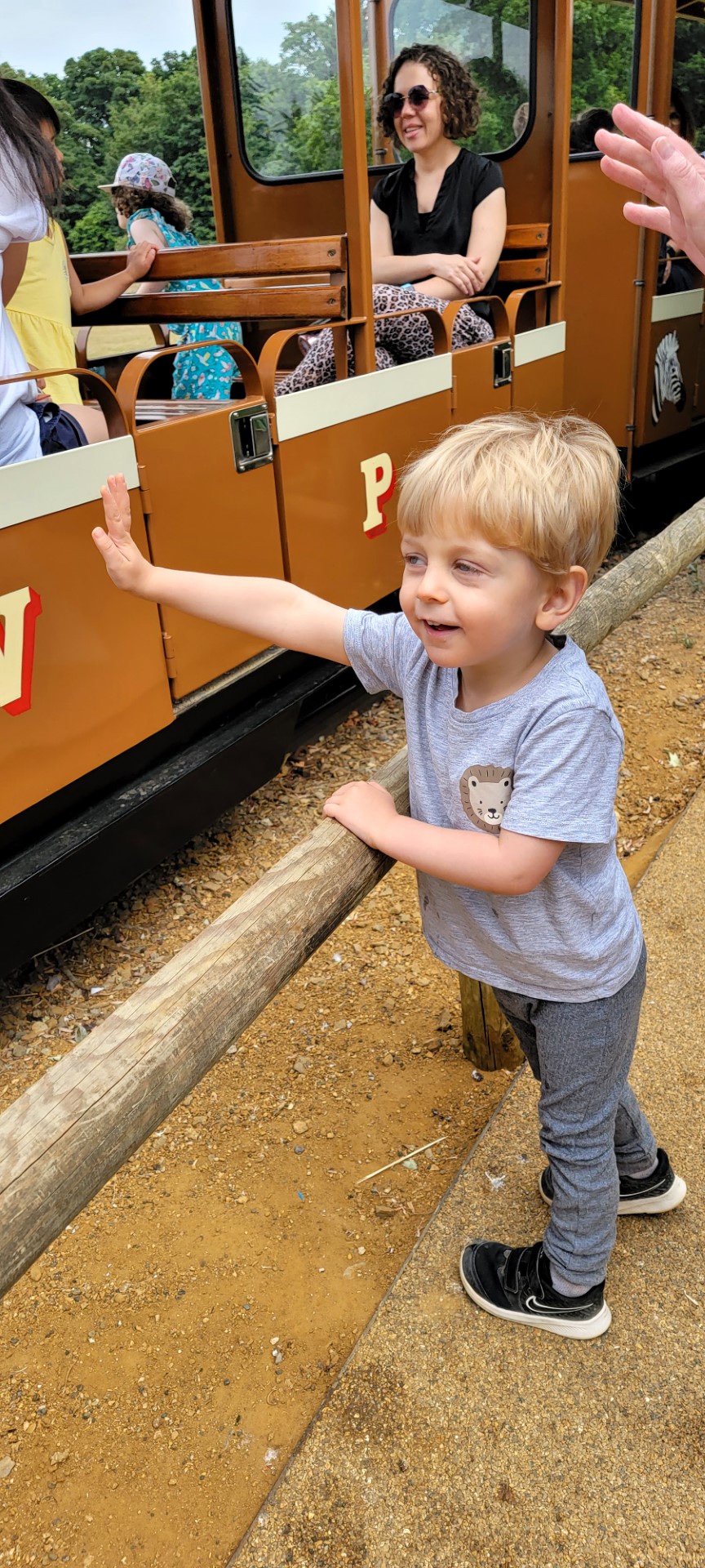 It was a nice ride around the park – getting to see some of the other animal exhibits, but Henry had more fun waving to all of the people along the tracks.  They were there to see him go past, don’t you know?