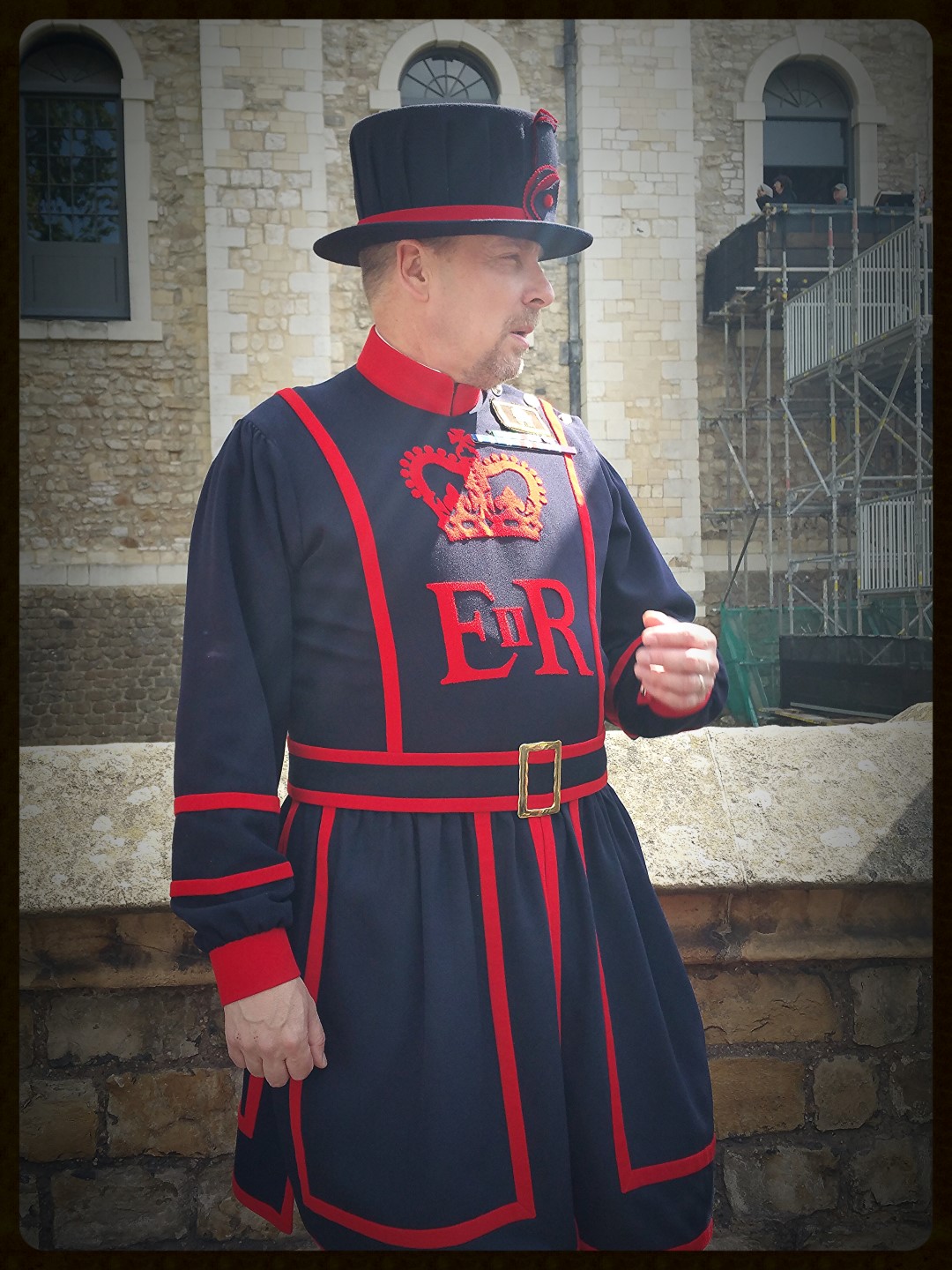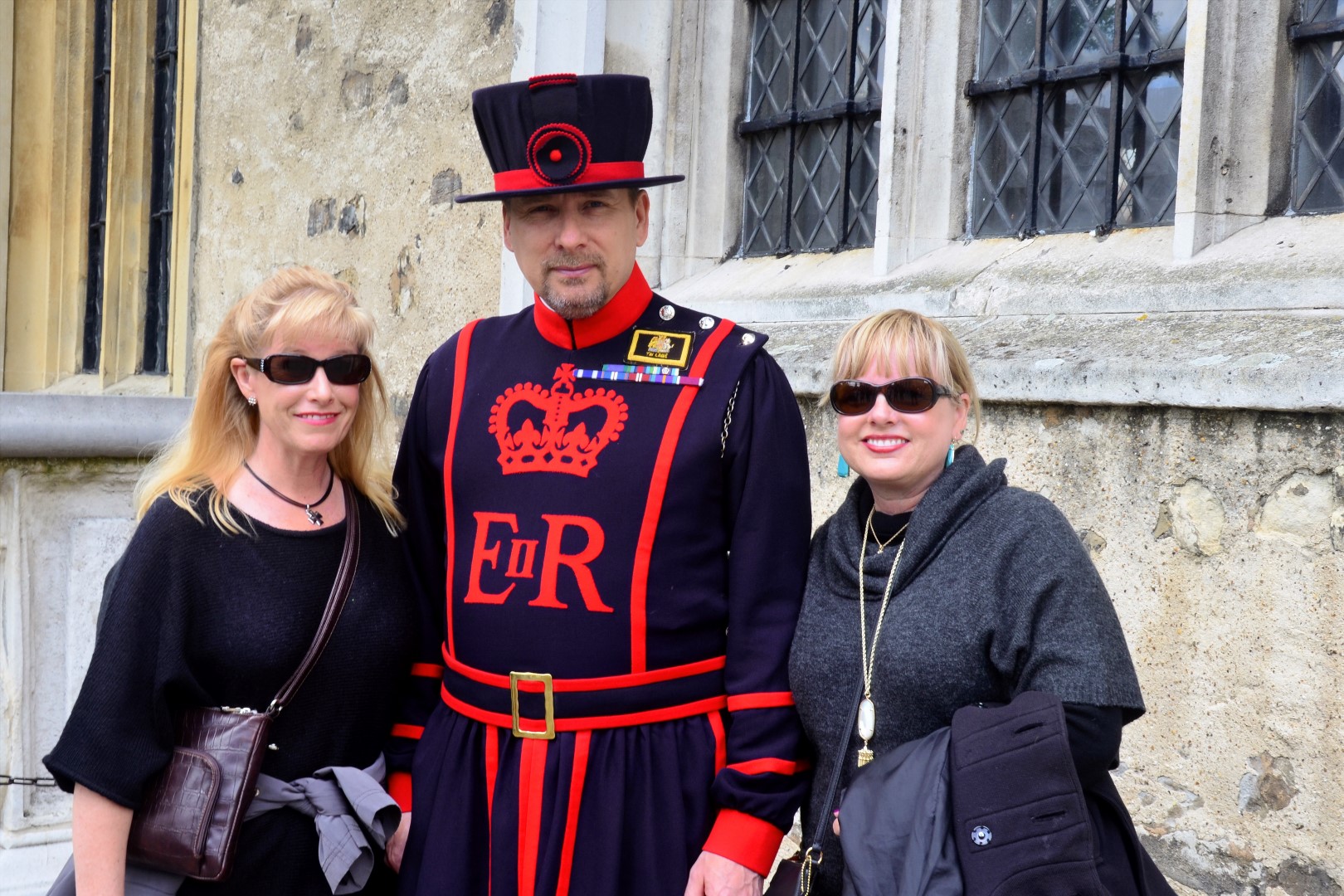 LeAnn, Kathy, and Andrew - our Yeoman Warder guideWhatever… it’s time for our tour! And our Yeoman Warder (Beefeater!) does not disappoint! Andrew, our YW, is excellent and keeps the group moving and engaged!