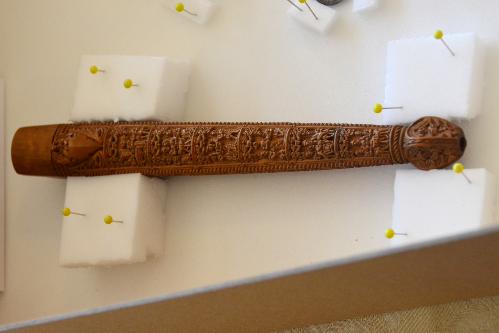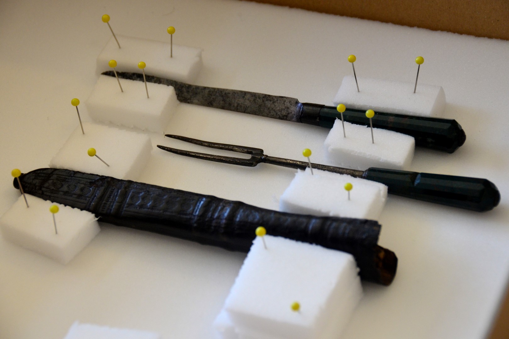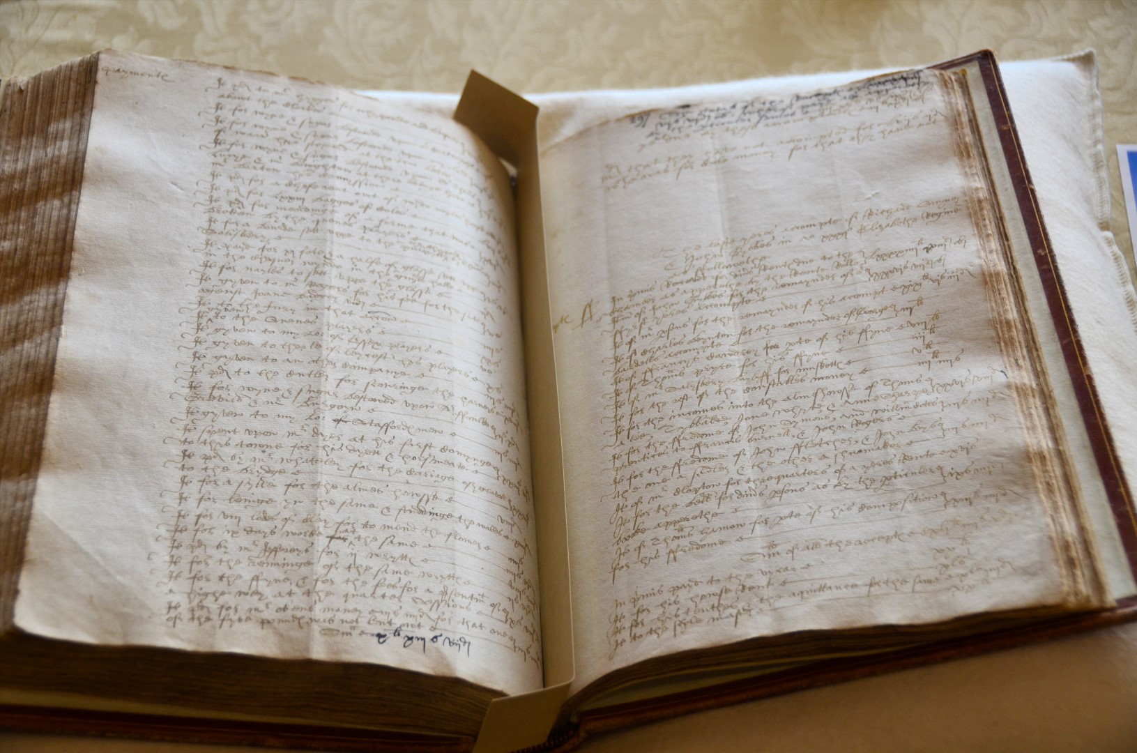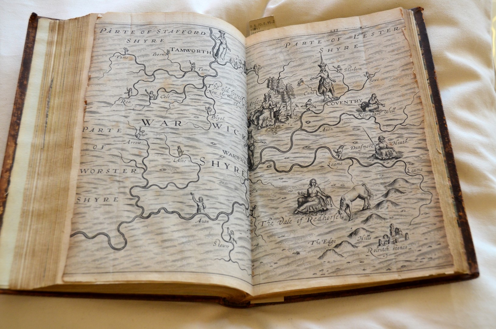 Our guides have laid out a long table with numerous items, ranging from period pieces (dagger sheaths and other household items), administrative documents of the period (deeds and other accountings), and actual copies of maps and other reference documents from the late 1500s and early 1600s that Shakespeare used for the historical and location details in his plays.