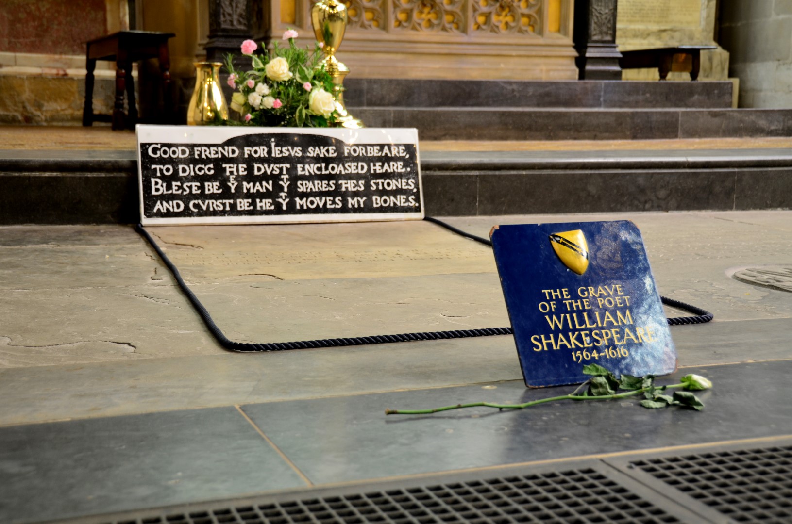 This is the church, in Stratford-upon-Avon, where Shakespeare was baptized, where he worshiped, and where he is currently buried.