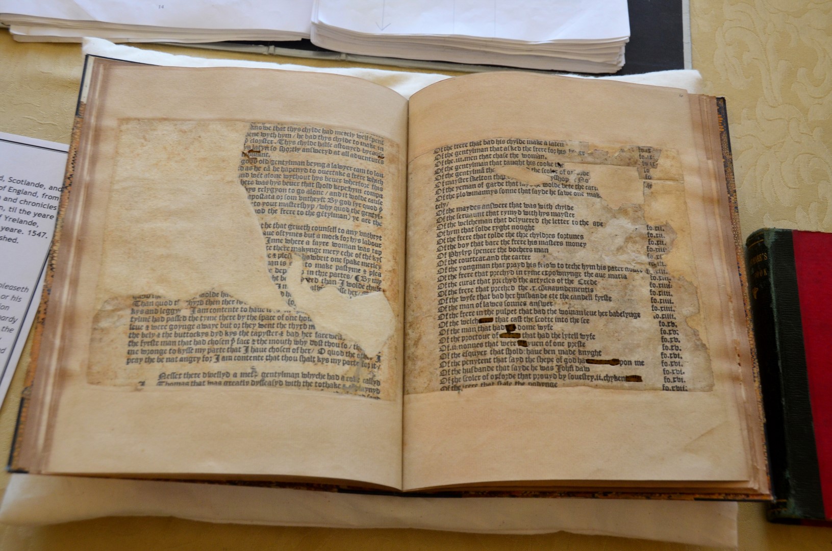 After yesterday’s ability to run along the castle ramparts from the 1300s, seeing old historical books from that time period describing the history of Henry V, a copy of Coryat’s Crudities (actual copy from 1611), and the only surviving copy of this edition of “The Hundred Merry Tales” (aka “Shakespeare’s Jestbook”) really puts a lot of time and history into perspective in just a couple of short days!