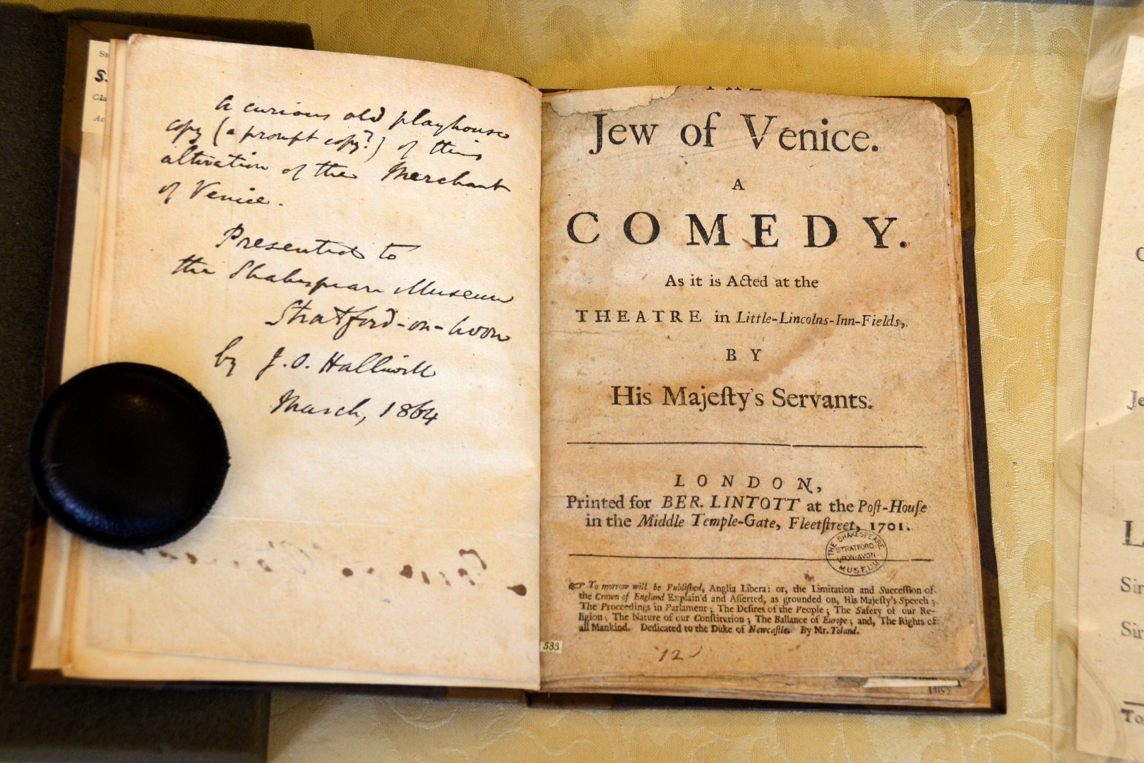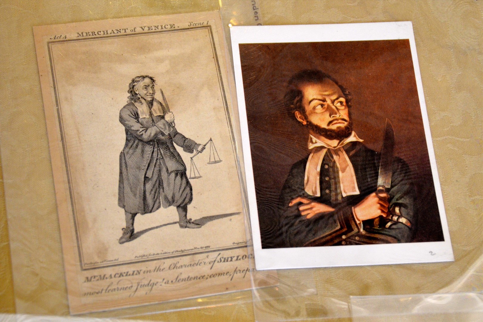 Knowing that we had just seen “Merchant of Venice” the previous Friday evening at the RSC, they had also laid out a few appropriate artifacts from previous productions from the 1700s.