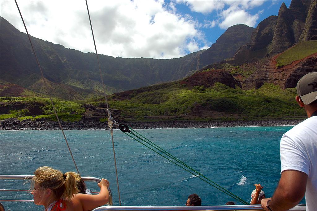 Another early start, but again ends up being *VERY* worth it. We’re taking a catamaran cruise up the famous Na Pali Coast on the western edge of Kaua’i.