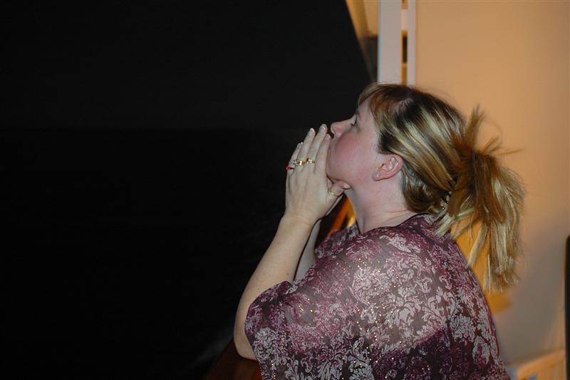 After dinner, we sit on Paul and Geri’s aft-facing deck, watching the wake disappear into the night.