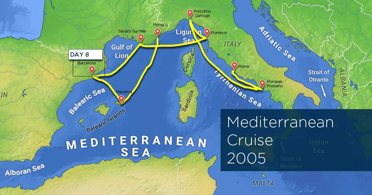 Going to sleep in France and waking up in Spain (well, technically off-the-coast-of Spain) is kinda cool. Today’s destination is the grand Spanish city of Barcelona! We have a couple of shore excursions available to us today, and I’m going to take advantage of BOTH of them! The first one has me, Paul, and Geri heading out for a bus tour of several major cathedrals, with a mid-point stop at the huge Catalunya Museum.