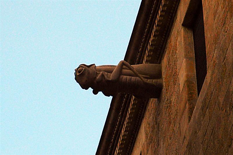 Walking down the street alongside the cathedral and moving back to our bus, our guide points out some very creative gargoyles above us. These are clearly being used for water drainage/rain spouts – but they’re really intricate and interesting!
