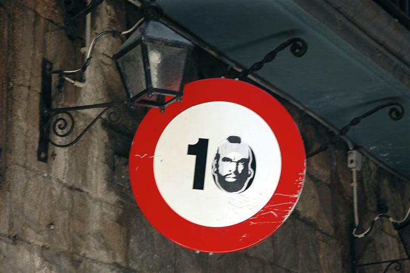 Heading back to the ship, Paul and Geri “retire” for the evening, while I pick Kathy up for an afternoon/evening in Barcelona! We head down to La Rambla, a tree-lined main pedestrian street in the middle of town. In addition to some shops, we stop at an open-air cafe to enjoy a light supper and people watch for awhile. It’s a lot of fun just “roaming about” new places with no real agenda. It is a little shocking, though, to see such an “American” cultural icon show up on a street sign. Ha.