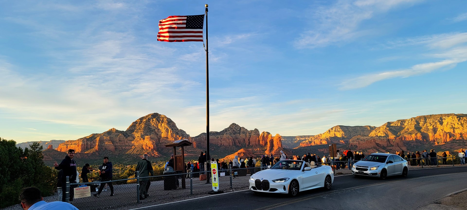 Between the stunning views of the setting sun itself and the eclectic and electric violinist playing a background medley, the views of the Sedona valley was awash with red, orange, and gold. It was exactly what we had hoped to see … albeit very cold and windy! We stayed for as long as we could manage there and, as the crowd started to thin, we made our way back to the car as well.