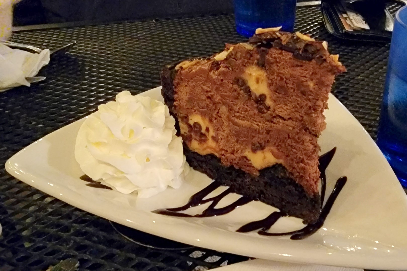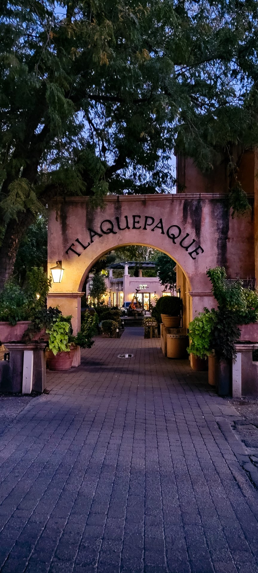 At this point, we were a bit “peckish”, so a decision was made to head to an area Paul and Geri had visited on a previous visit. The Tlaquepaque (“tah-lah-kuh-pah-kee”) market area has many shops and art stores during the day, but the charmingly lit area also has a number of cafes and restaurants. Our meal was lovely – and the dessert was heavenly!