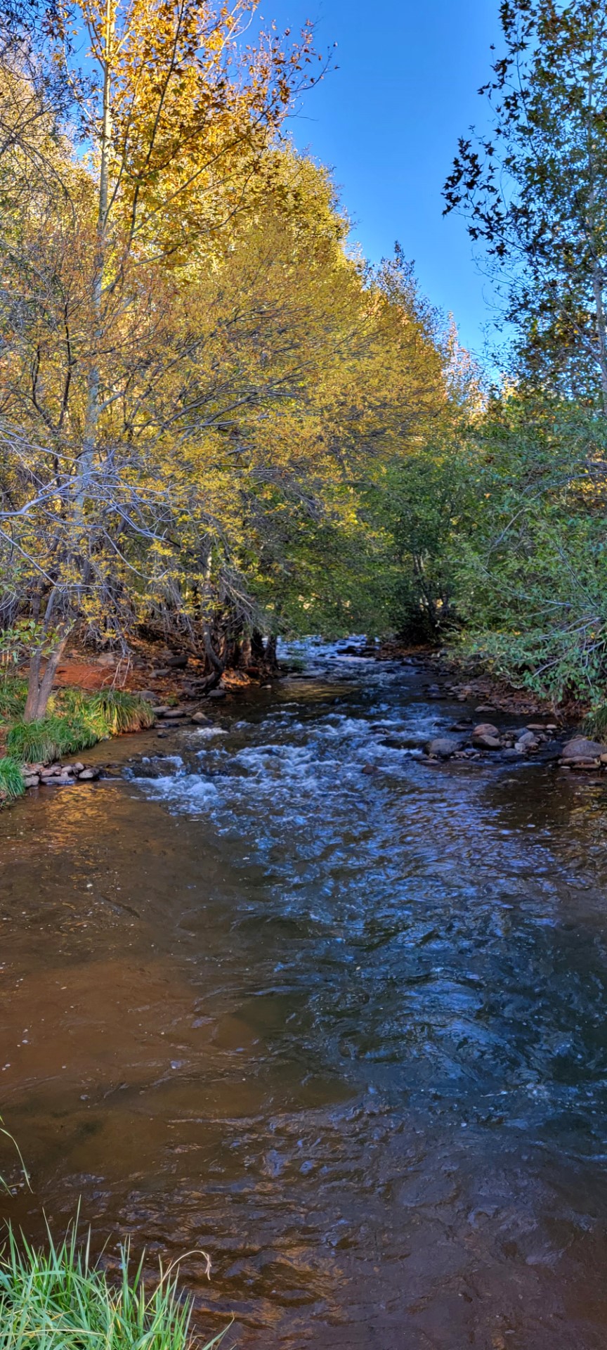 The well-maintained trails led to a flowing creek with trees providing the colorful and welcoming guides that would lead us up the creek itself.