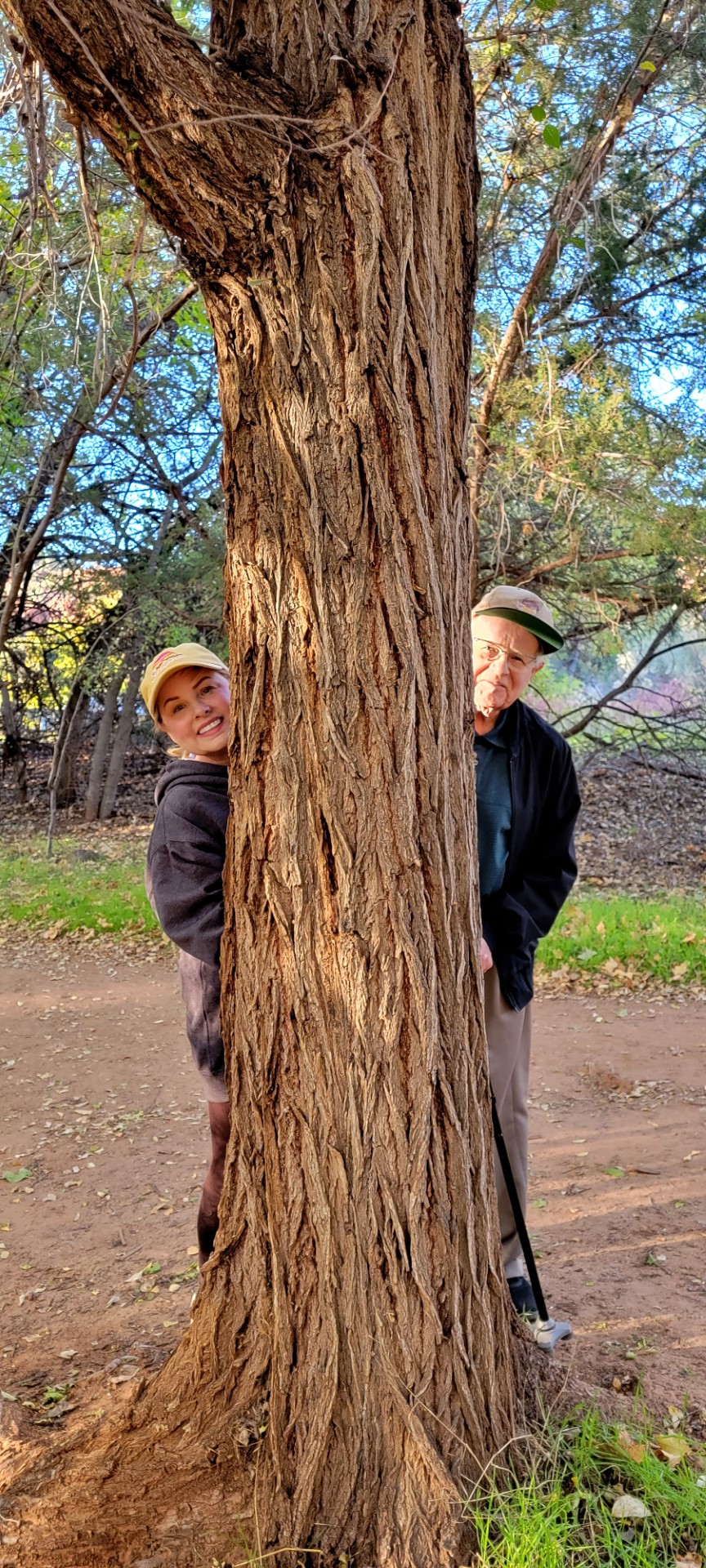 A fun photo of Kathy and Paul peeking out from a tree later, and we’re heading back to the house for sunset and dinner down at the Tlaquepaque cultural marketplace!